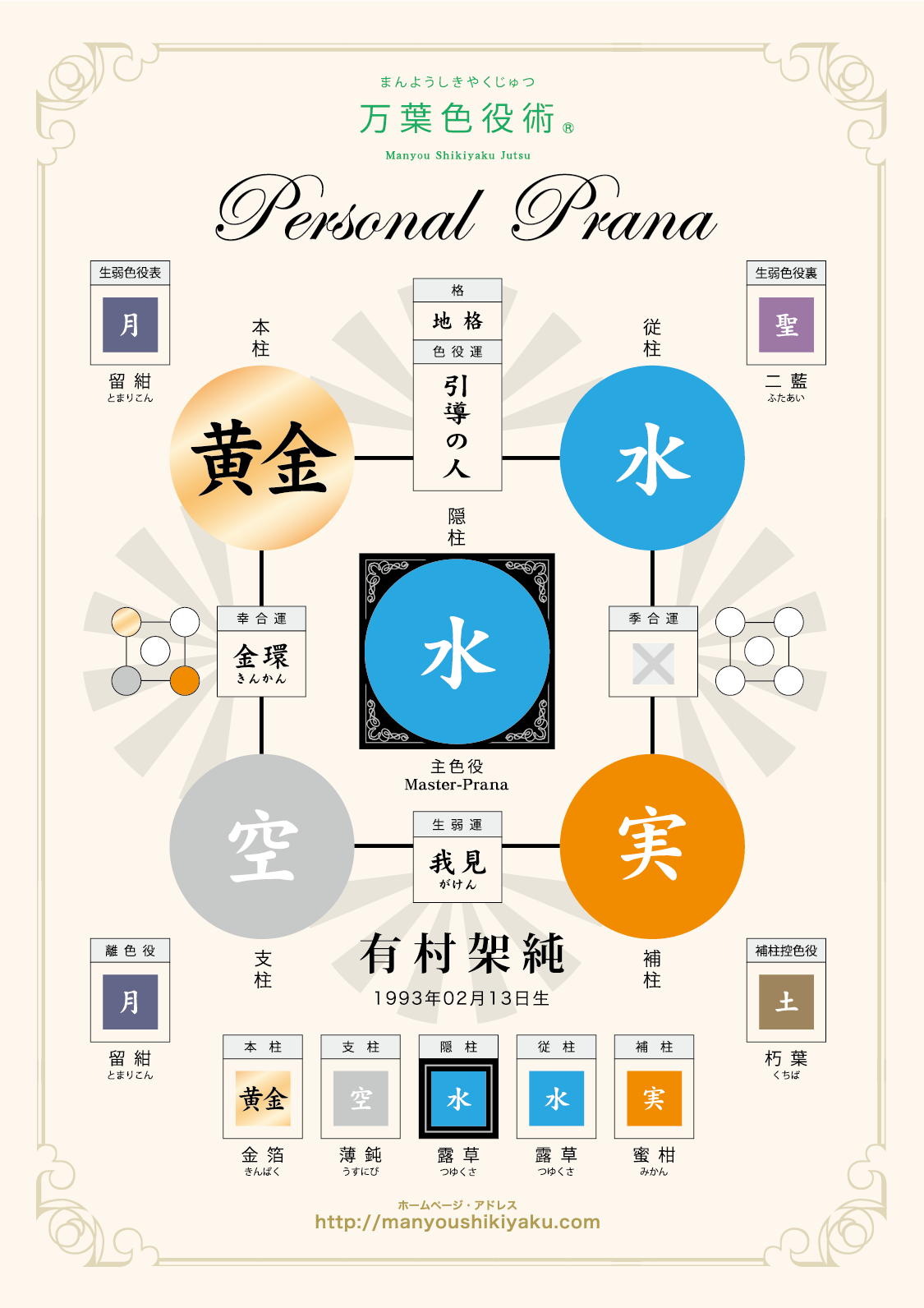 主色役【水】=引導の人は、大きな河の対岸へ舵を切り、持前の管理能力を活かしながら、希望溢れる未来へ、迷い人を導く夢先案内人